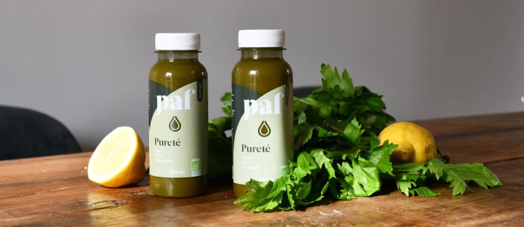 Le jus « PURETÉ » est disponible sous forme d’une cure de 12 jours, à raison d’un jus par jour. Pour des résultats plus en profondeur, nous recommandons de suivre la cure avec le guide qui l’accompagne.