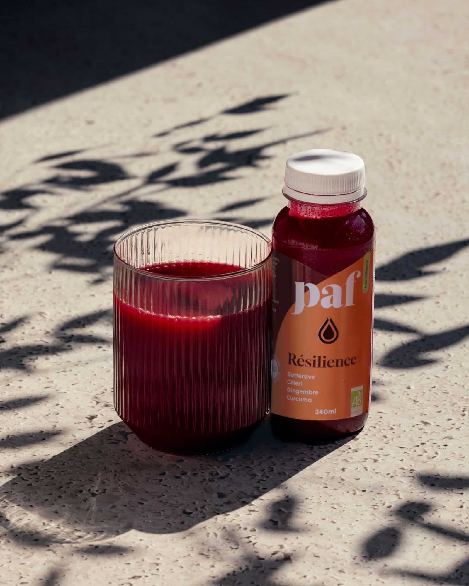 Les jus PAF ne contiennent aucun conservateur et sont non pasteurisés. Pour assurer leur conservation jusqu’à 15 jours (30 jours pour les shots) nous utilisons une technique de préservation à hautes pressions appelée HPP (High Pressure Processing). Cette technologie permet de conserver les qualités nutritives et gustatives de nos jus sans jamais les chauffer. Ils doivent être conservés au réfrigérateur entre +3°C et +6°C avant et après ouverture. Une fois ouverts, consommez-les dans les 24h. Veillez à bien respecter la date limite de consommation indiquée sur la bouteille.