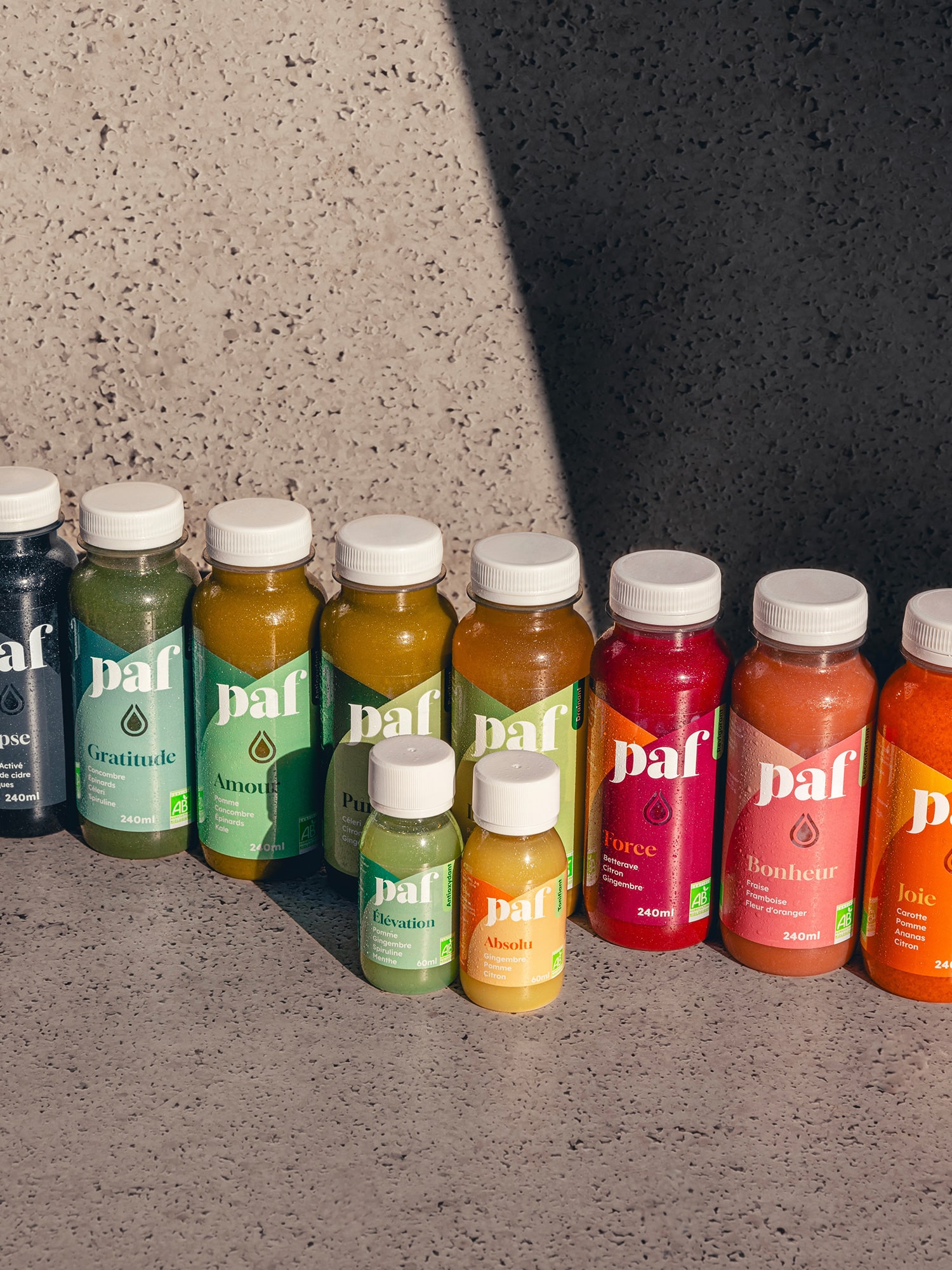 Depuis 8 ans, notre certitude est restée la même : aucun jus ou shot ne sera efficace si les légumes, fruits et superaliments qui le composent ne sont pas exceptionnels à tous points de vue. Donc nous ne faisons aucun compromis sur la qualité de nos ingrédients ! Nous privilégions systématiquement une alimentation de qualité qui préserve la planète, issue d’un mode d’agriculture durable qui respecte la biodiversité, nous préférons toujours un emballage qui ne requiert pas de ressources vierges, et un mode de production qui respecte l’intégrité nutritionnelle des ingrédients.